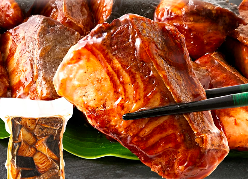 付属の**秘伝のだれで、照り焼きが簡単に。